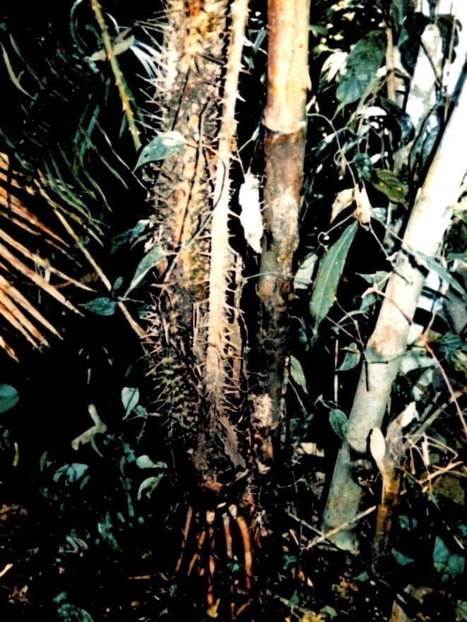 無数の鋭いトゲで他の樹木に絡みつき、太陽光線を目指してひたすら上方に成長します。