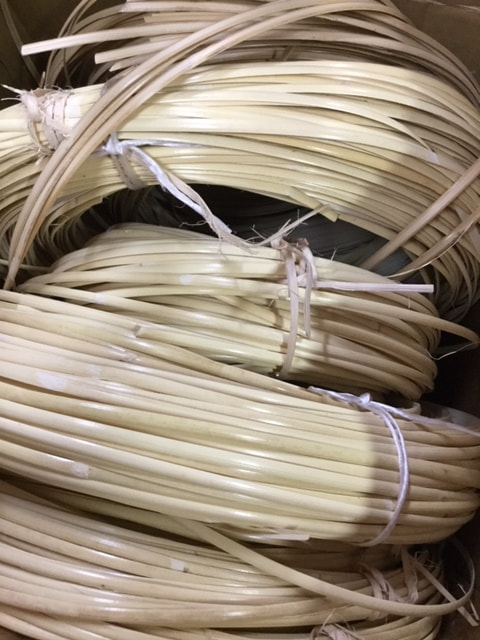 丸籐の表皮を一定の幅と厚みに挽いたヒモ状の材料です。
